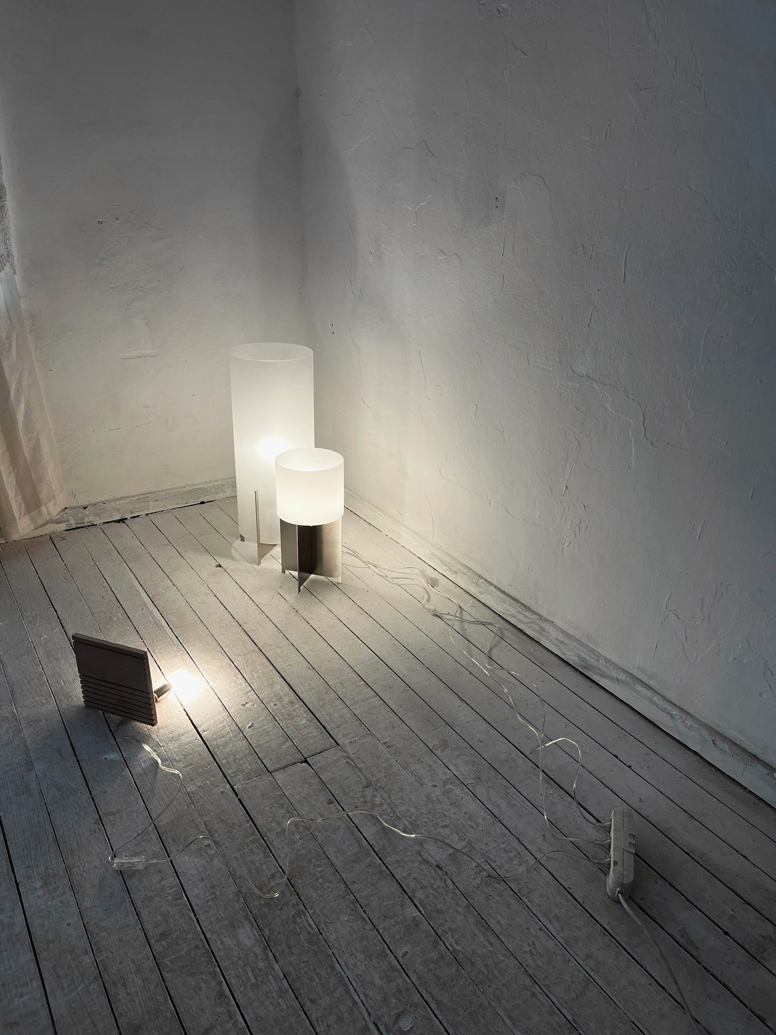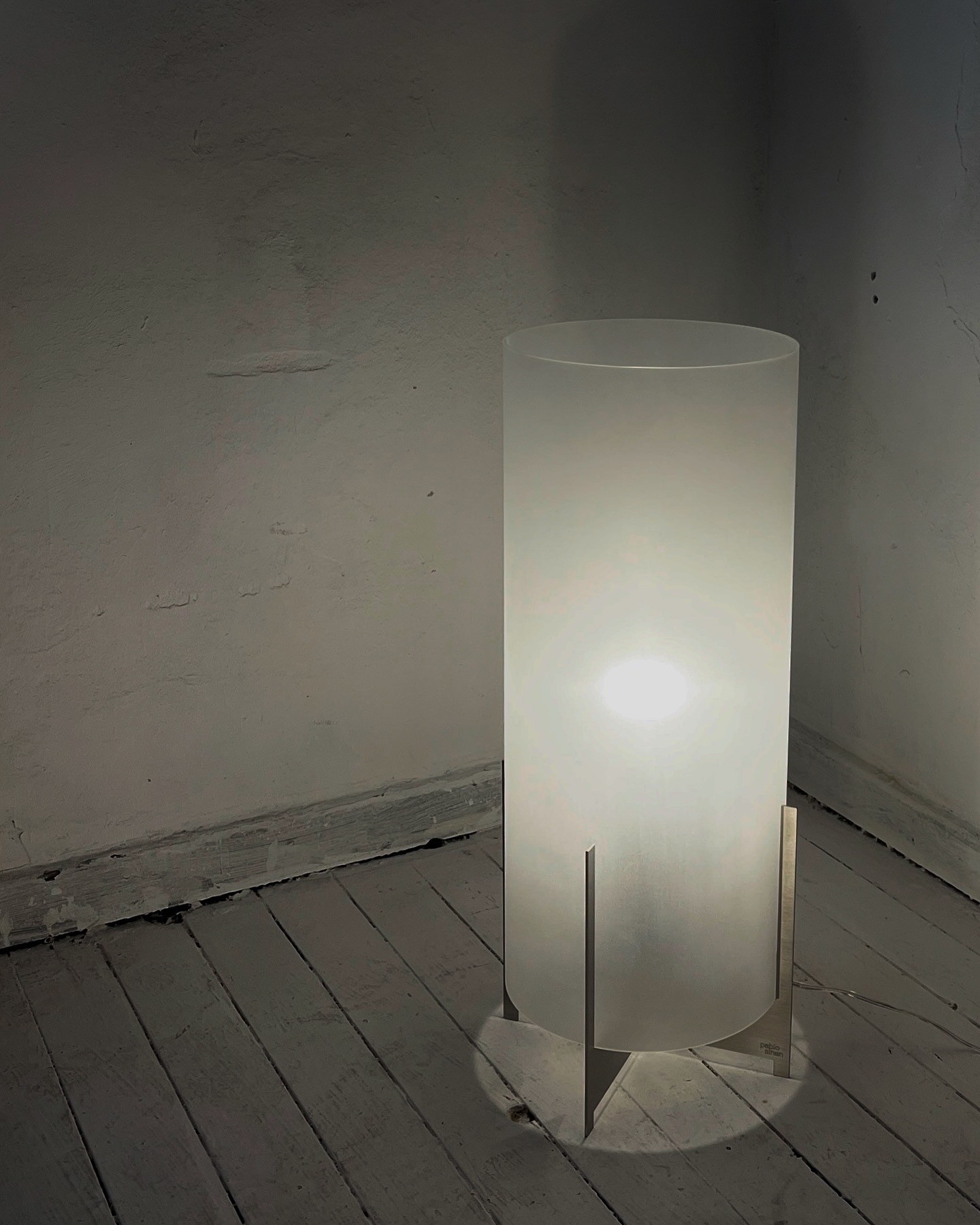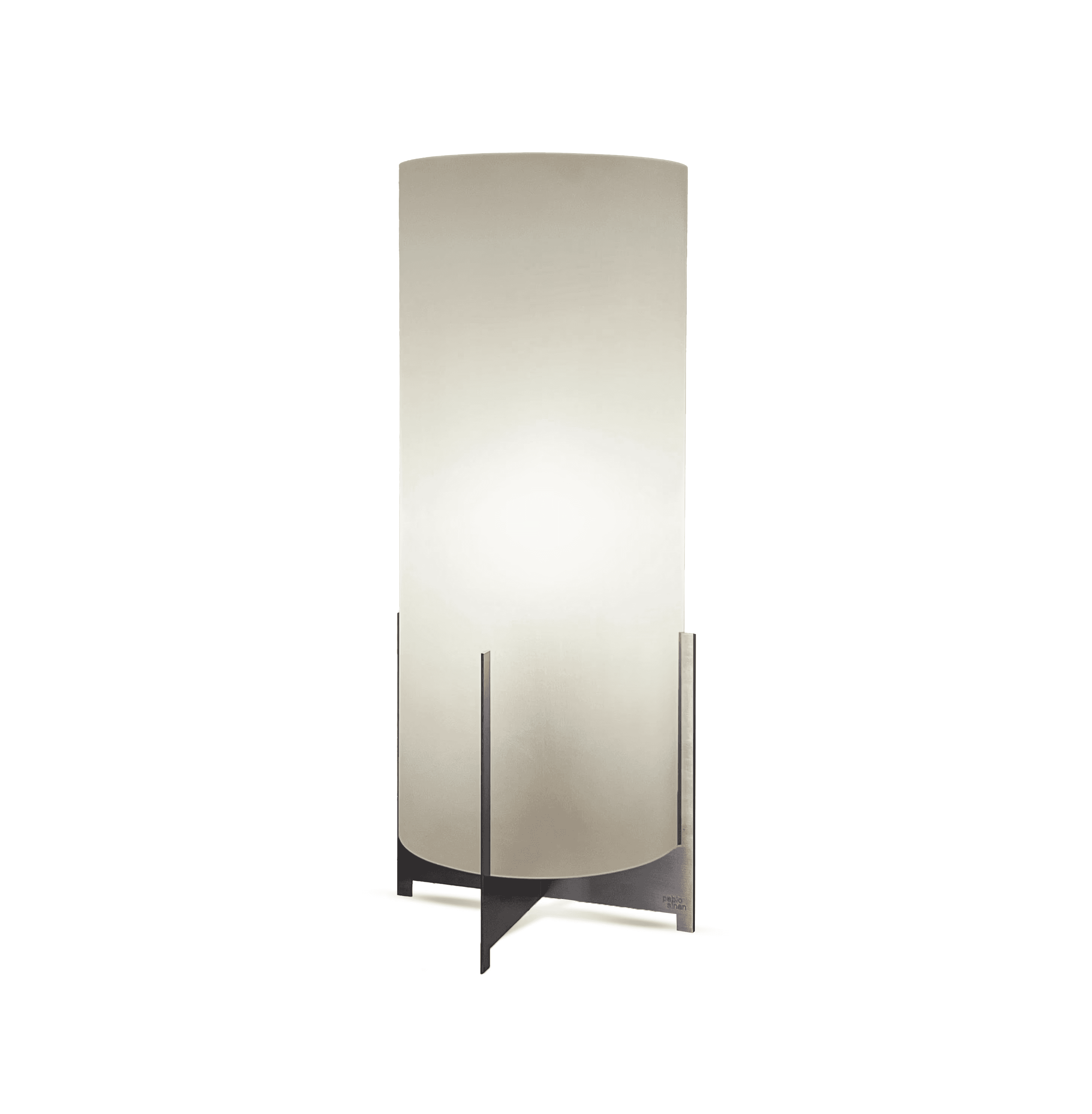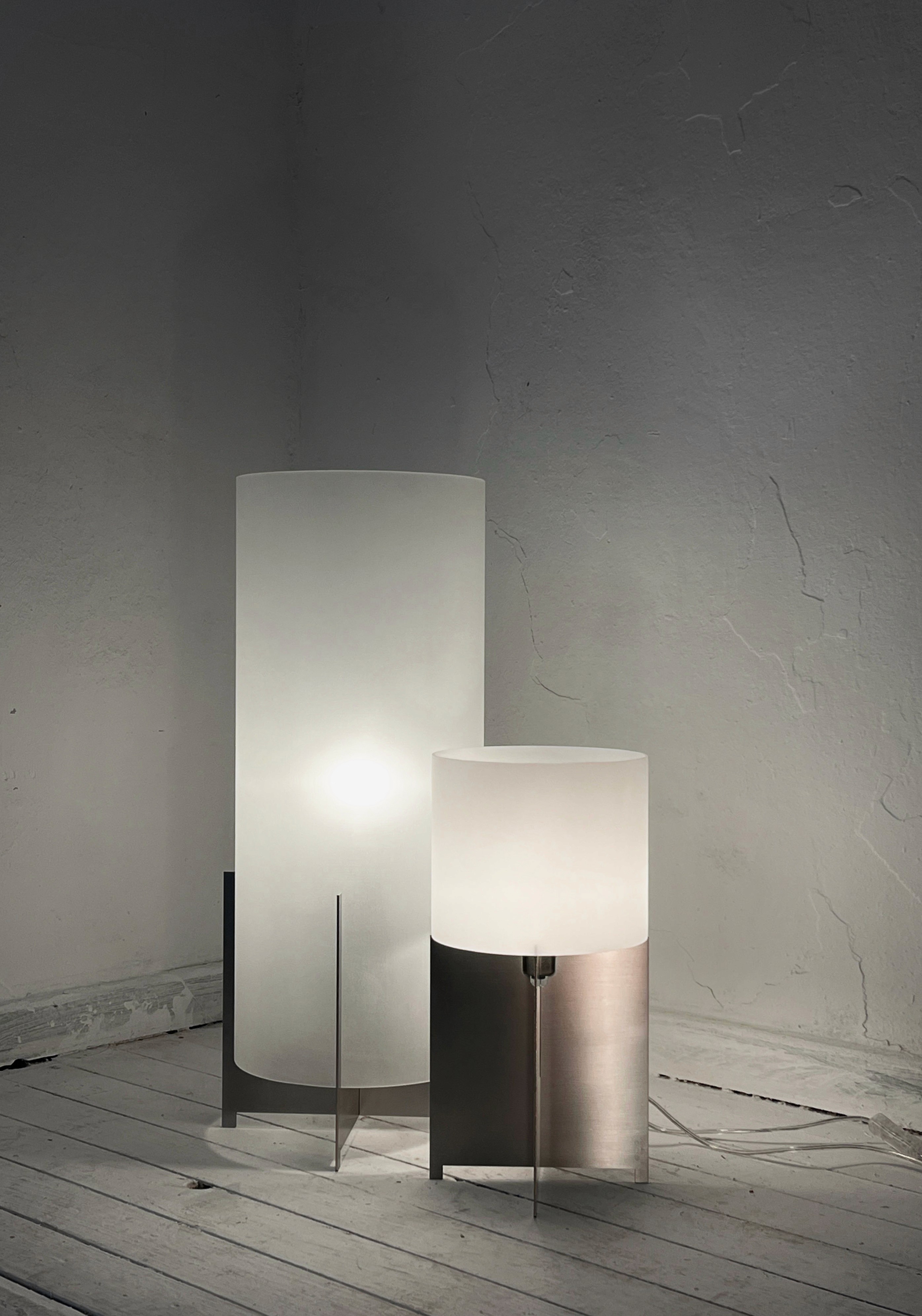 Lumix is a floor lamp that combines simplicity in form with a meticulous production process and a minimalist style. The most striking part of the design is the interlocking base consisting of two laser-cut stainless-steel legs with a hand-polished finish by master craftsmen. This gives the lamp a stable and solid base, with an elegant look. The lampshade is made of a polycarbonate cylinder, a 100% recyclable material, which projects a beautiful light when the lamp is on. These two parts perfectly complement each other, playing with contrasts such as softness - sharpness or coldness - warmth.