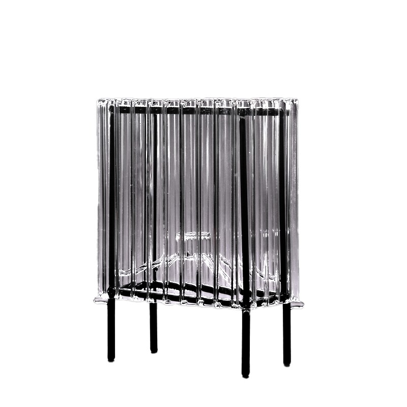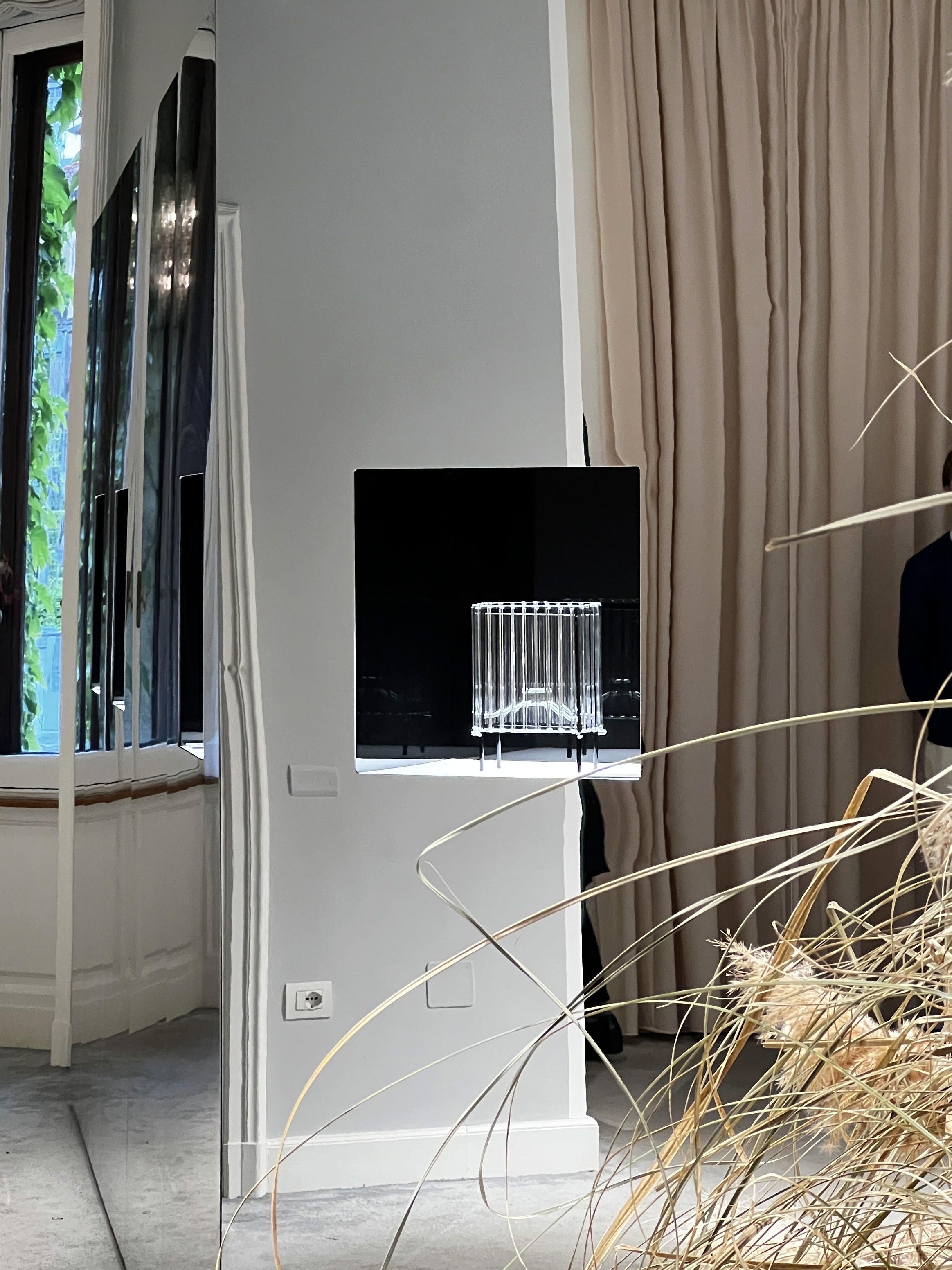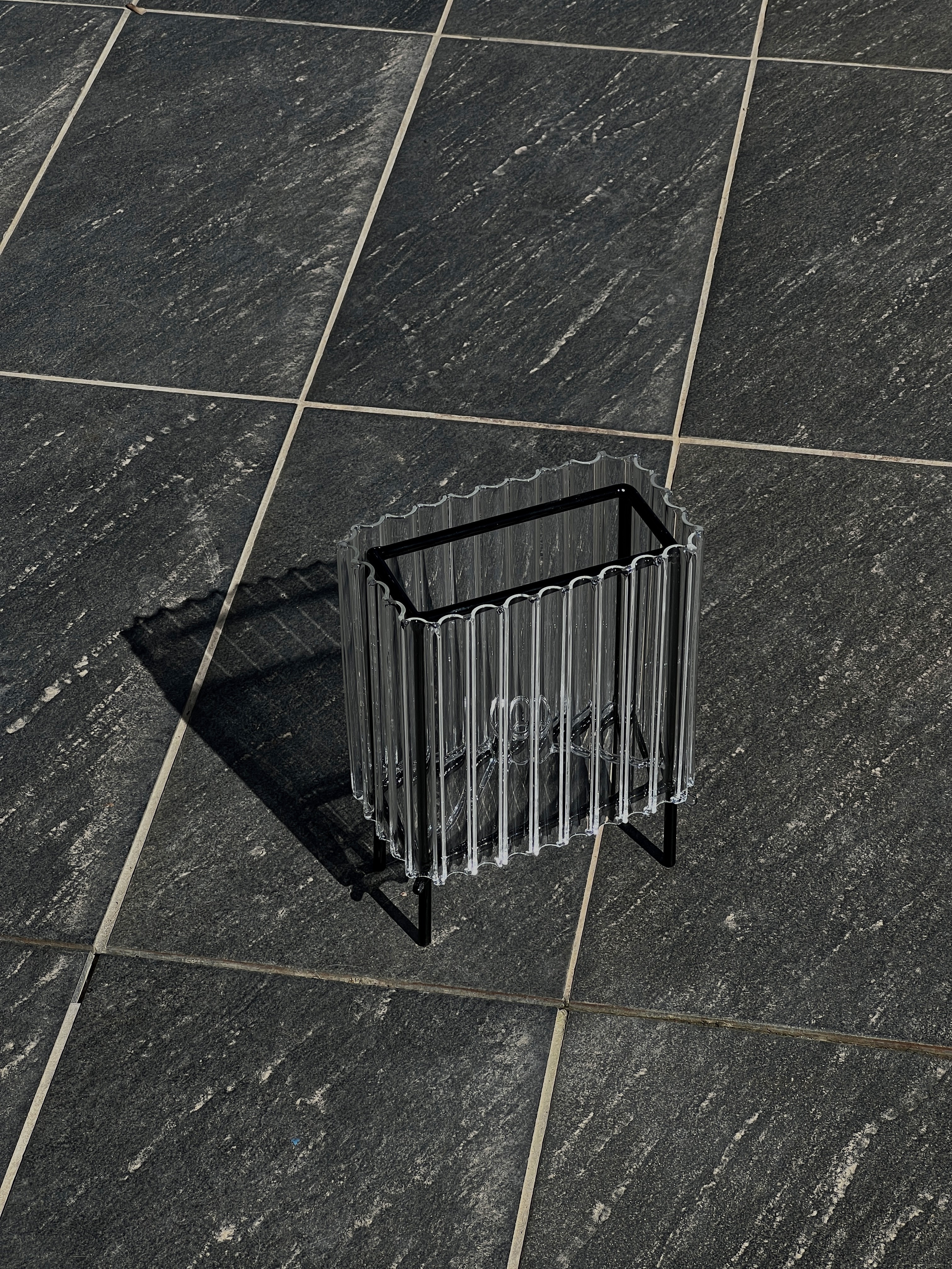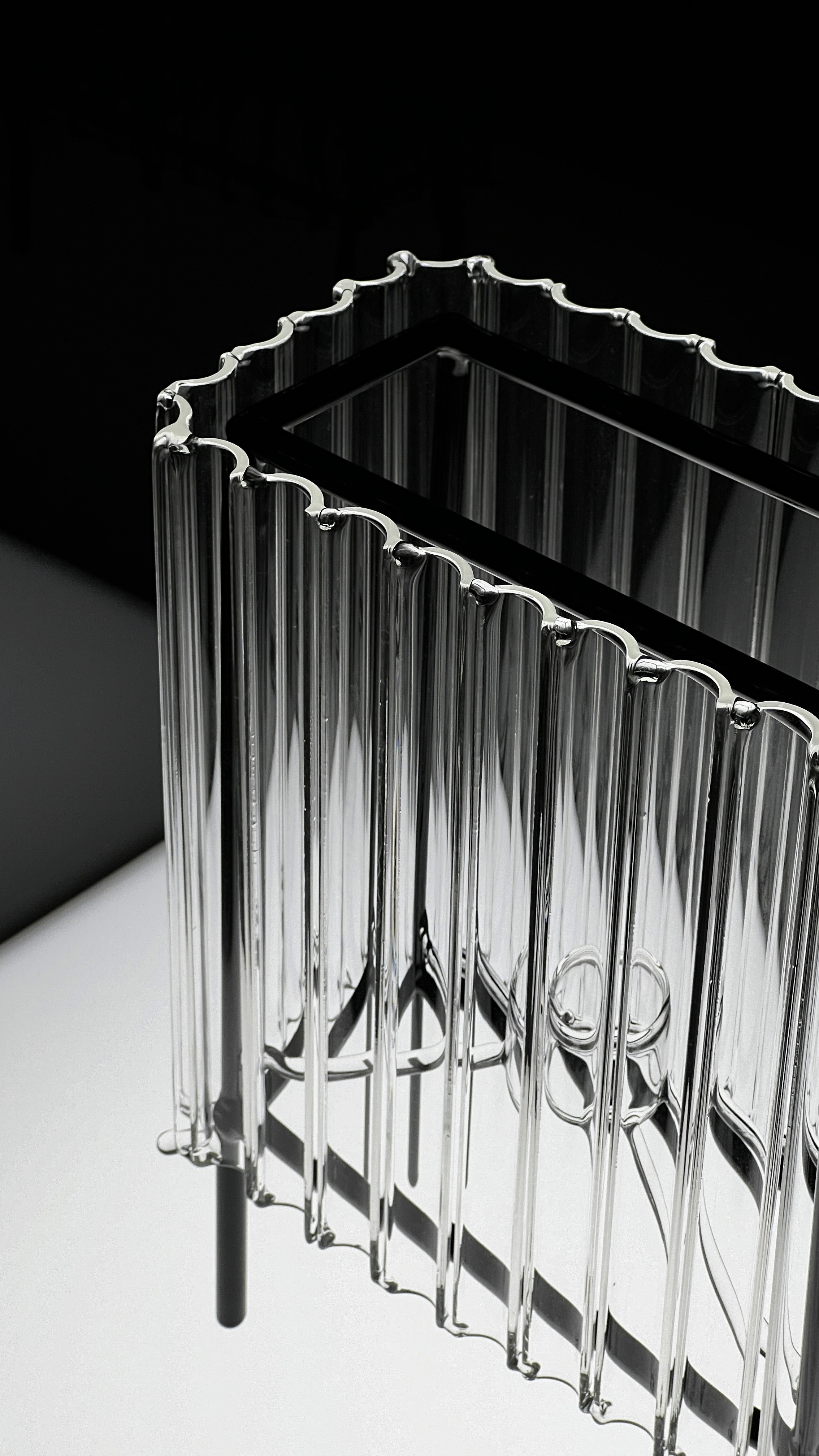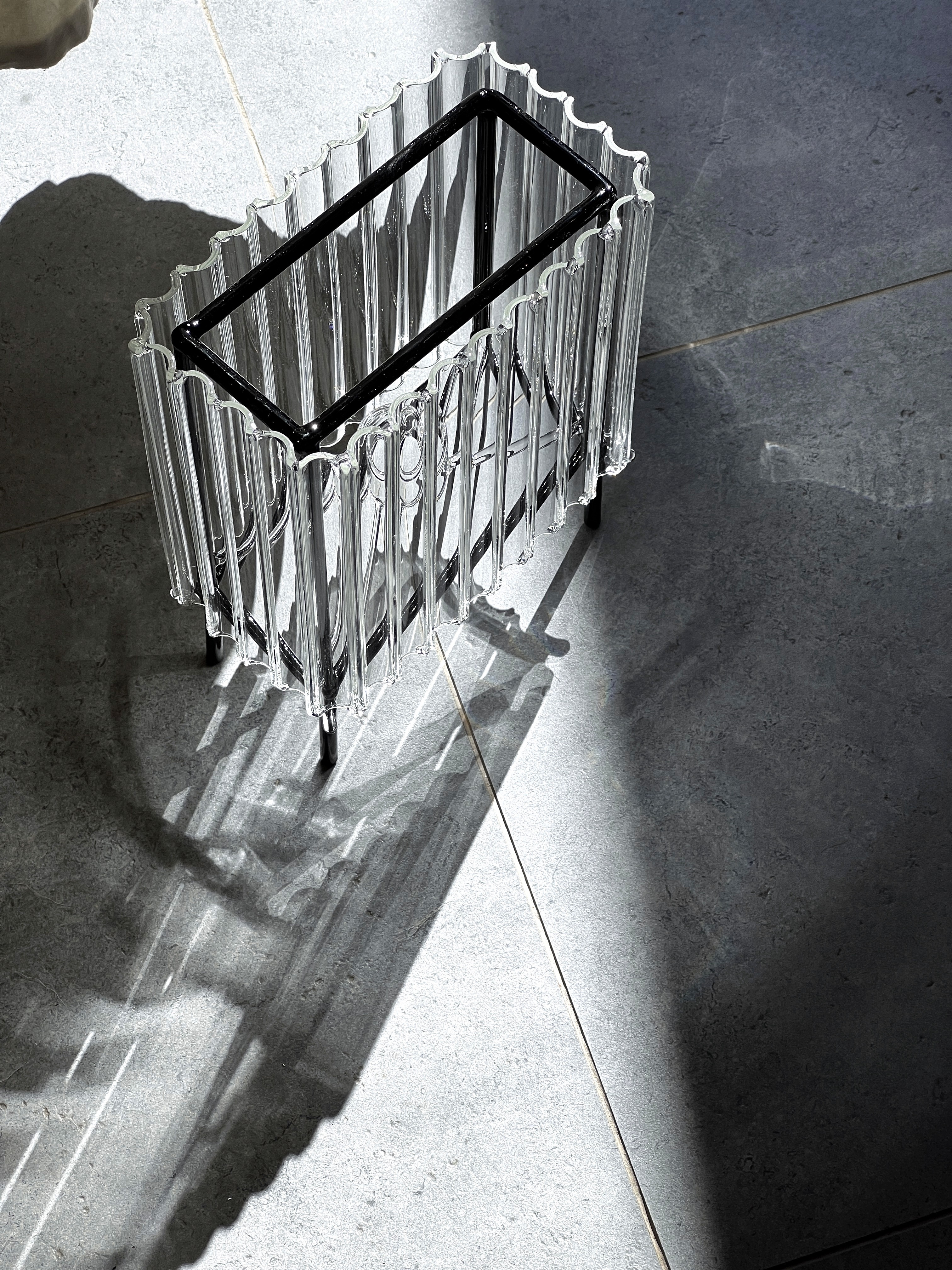 Nami Lantern takes inspiration from The Japanese Zen Gardens which are places of meditation. These soothing gardens are composed mostly by sand and rocks. The raked sand recalls the movement of water while the rocks imitate islands and land masses. The delicate pattern of the sand inspired me and I wanted to recreate its waves on a glass lantern to reproduce the effect of light refraction through water.