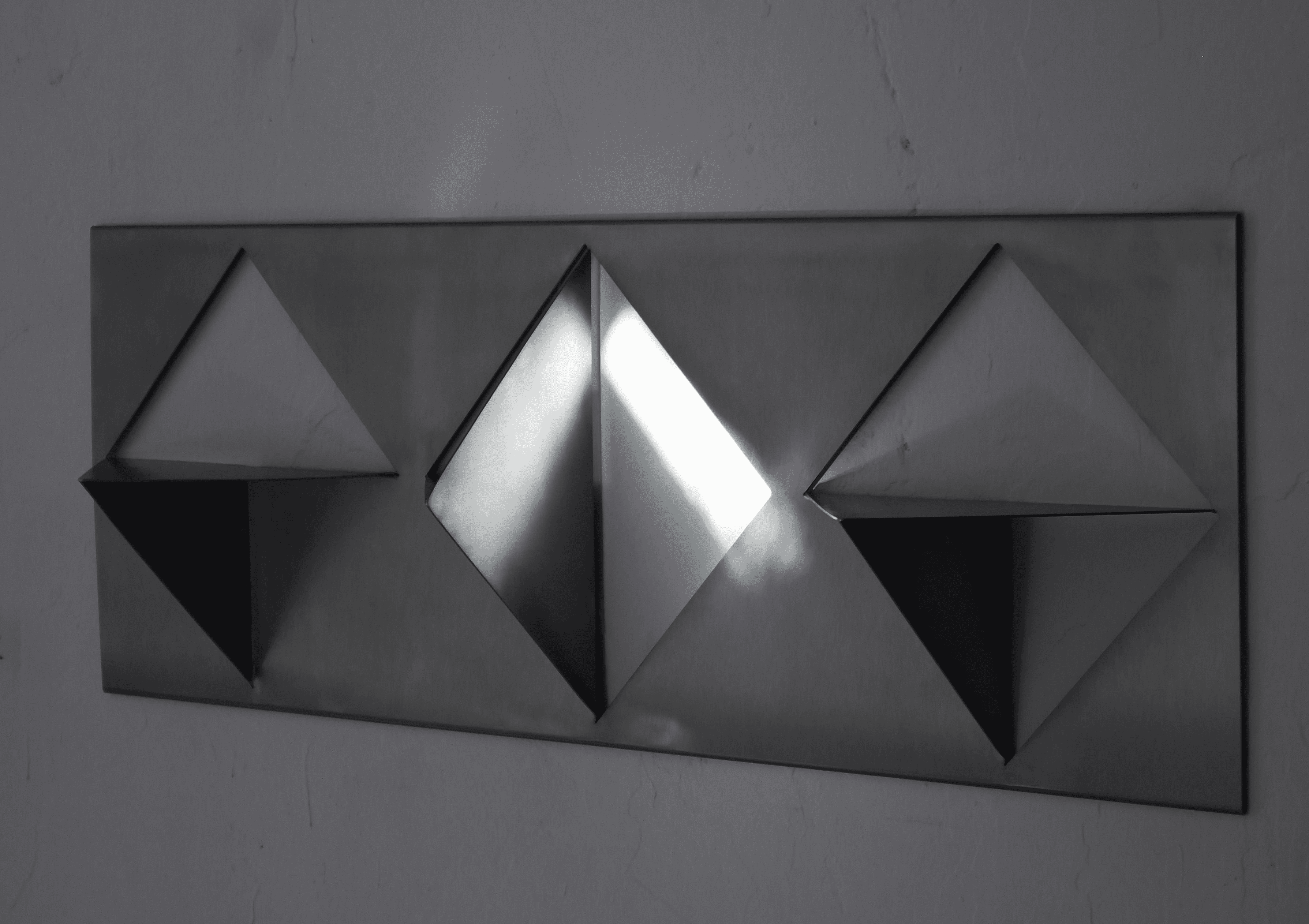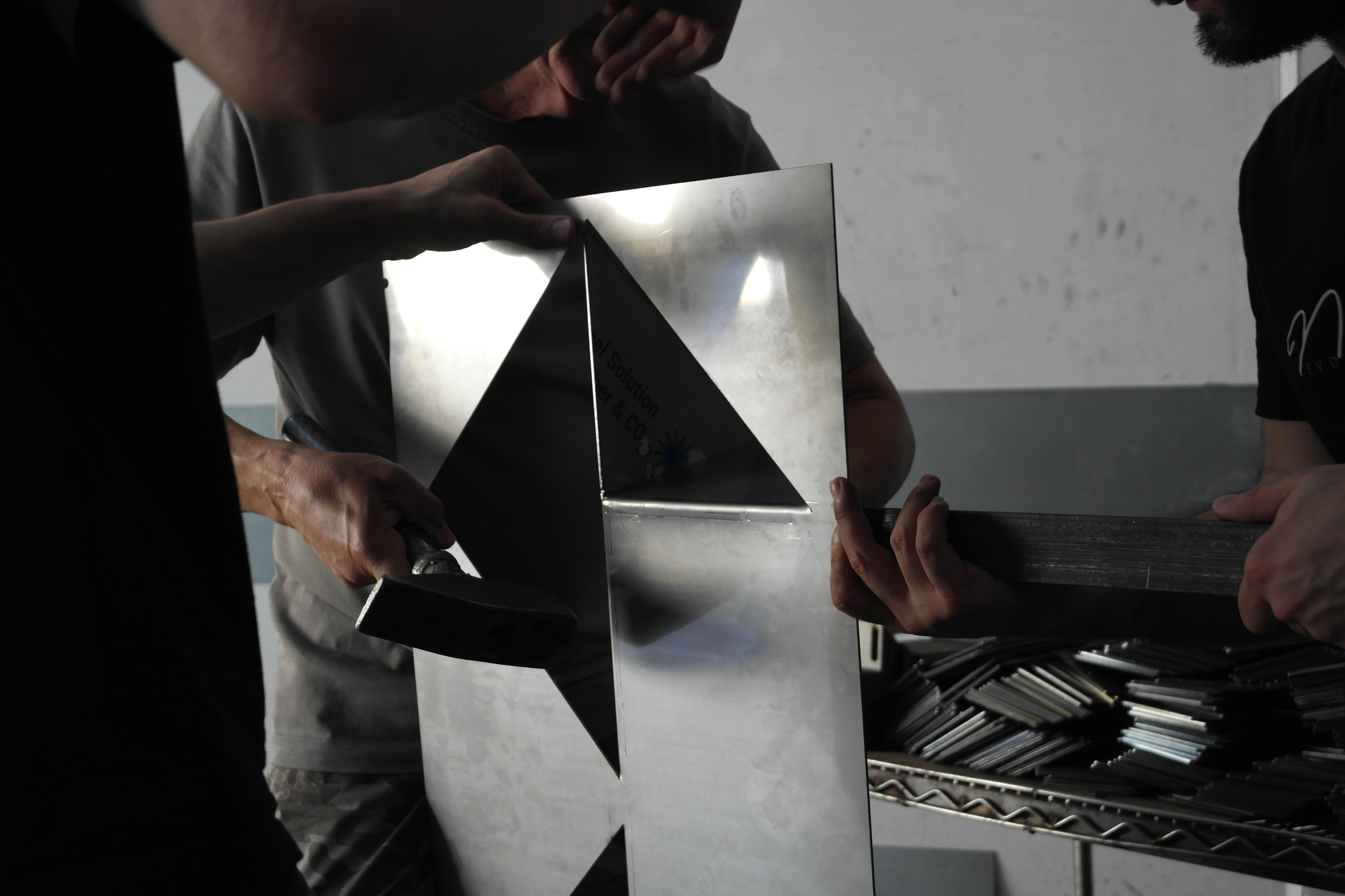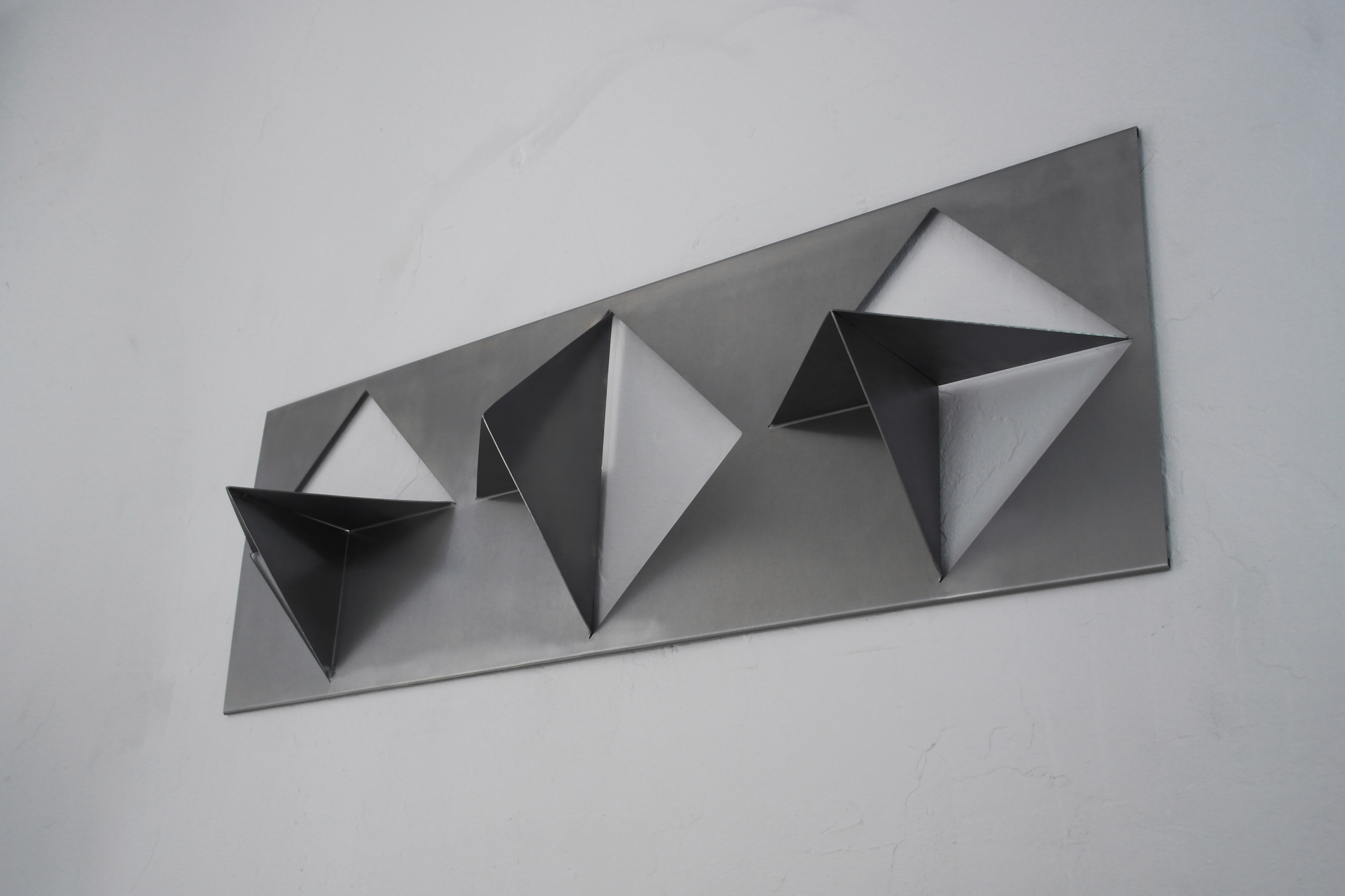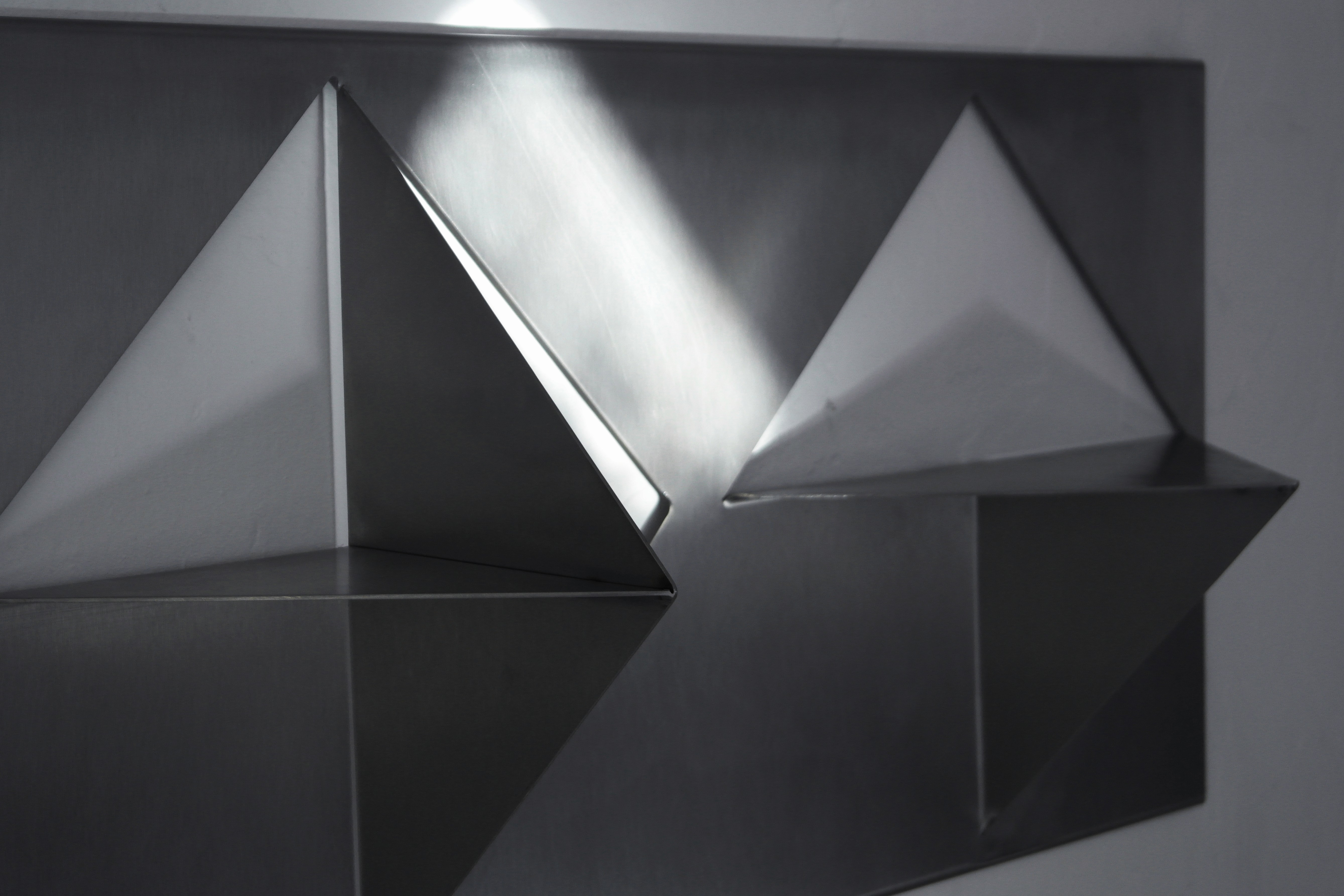 Tuzluk is a modular shelving system made out of metal sheets that are precisely cut and folded to create surfaces.